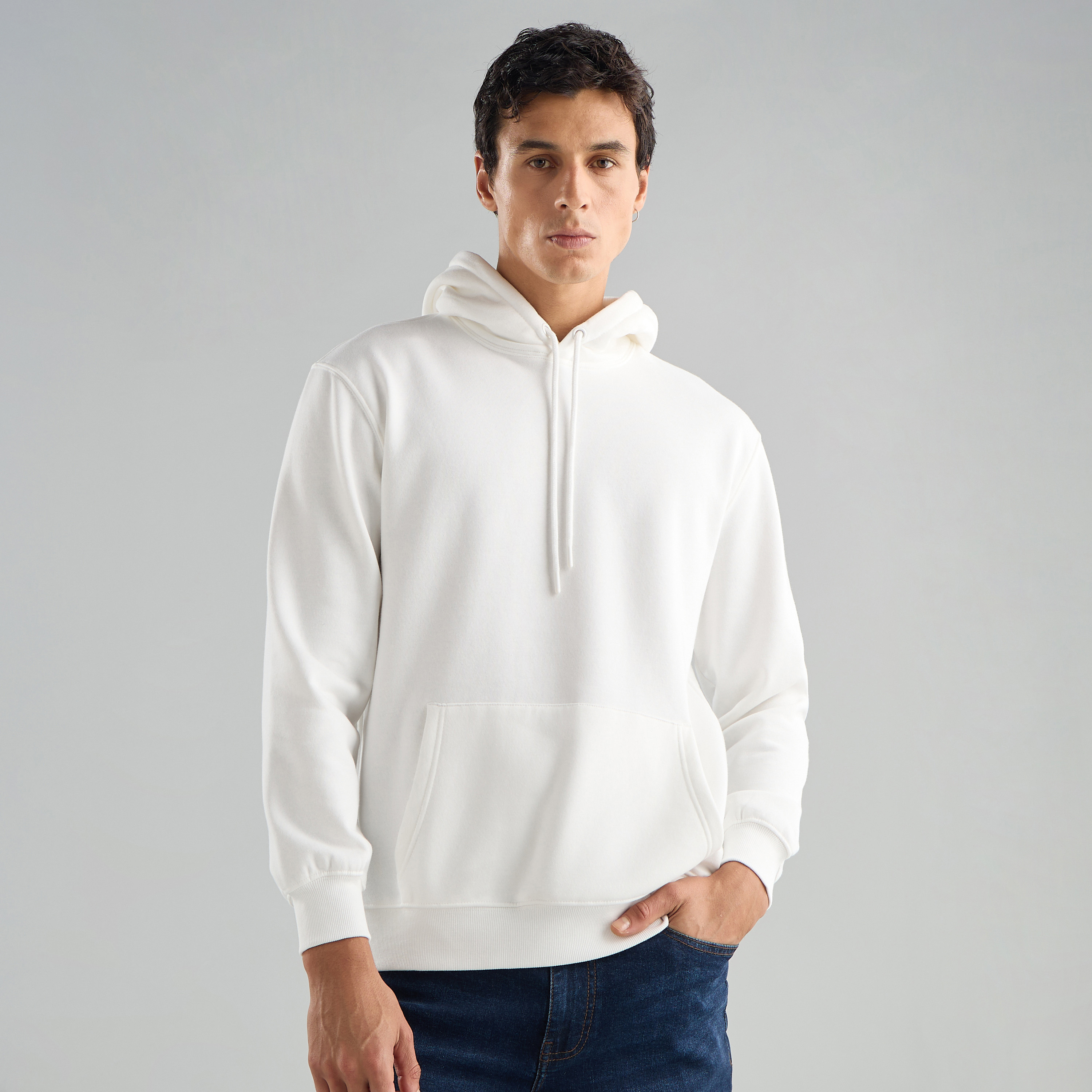 Albus – **Premium white unisex hoodie, 330 GSM soft fleece.**