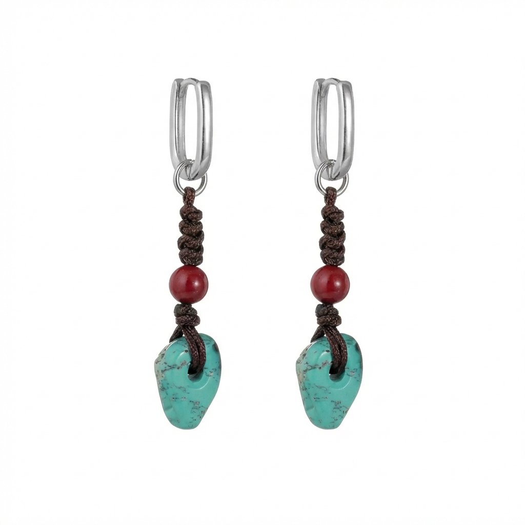 Ancient Protection: Raw Turquoise & Cinnabar S925 Silver Tibetan Earrings