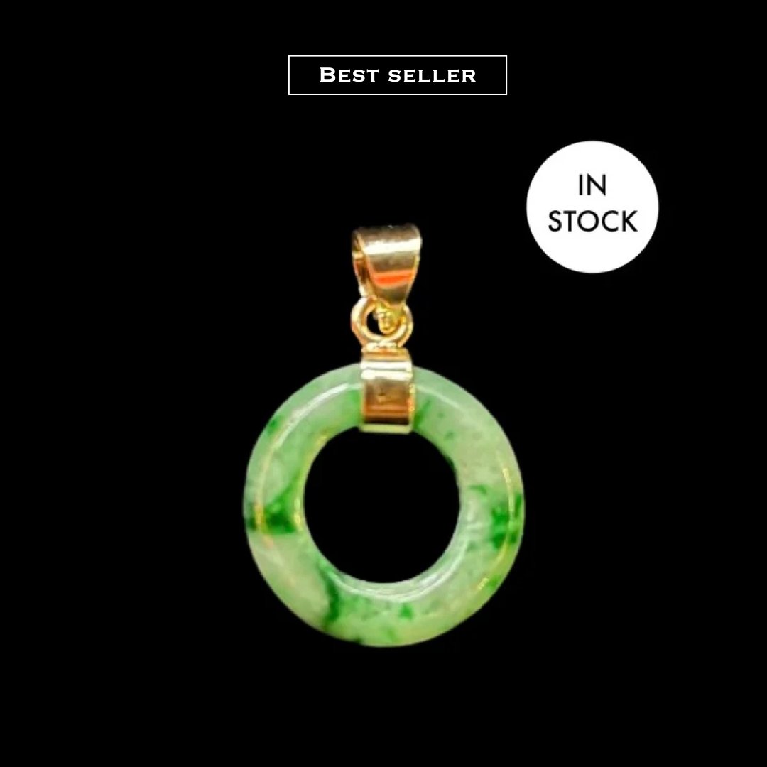 10K Mini Donut Pendant Strong Green Marbled Jade