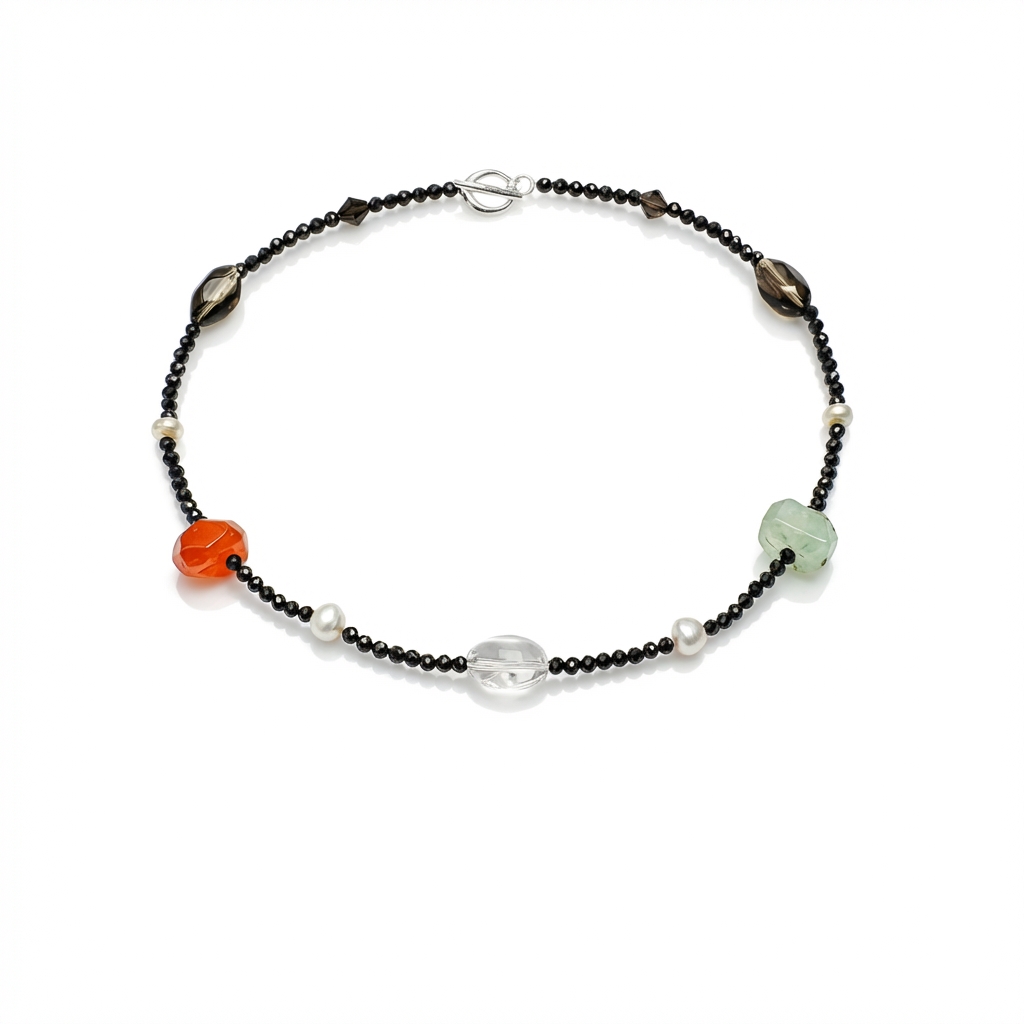 Elemental Harmony: Black Tourmaline, Prehnite & Red Agate Protection Necklace