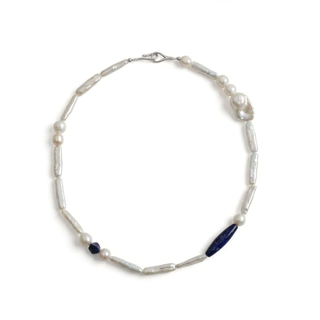 Celestial Wisdom: Lapis Lazuli & Baroque Stick Pearl Healing Necklace