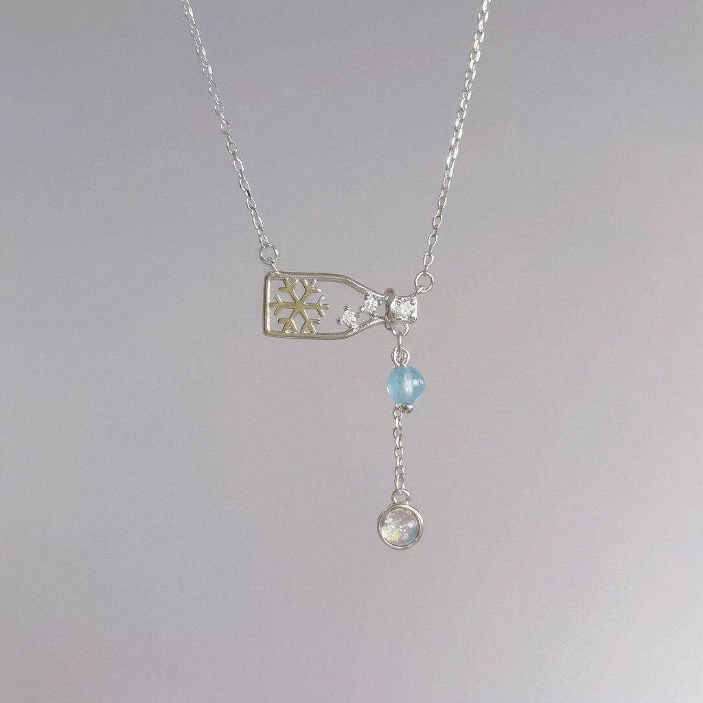 Enchanting Hope: Natural Aquamarine & Zircon Wishing Bottle Necklace