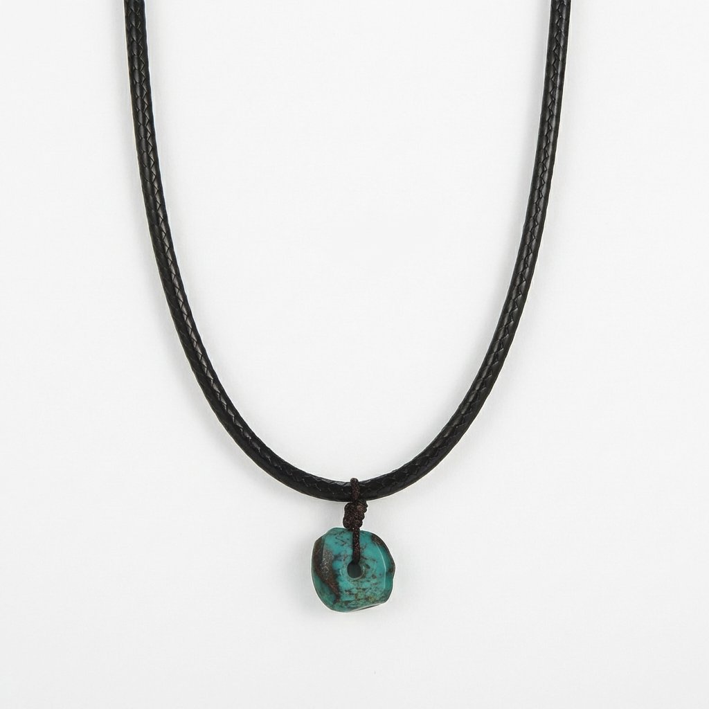 Ancient Wisdom: Natural Raw Turquoise & 925 Sterling Silver Pendant Necklace