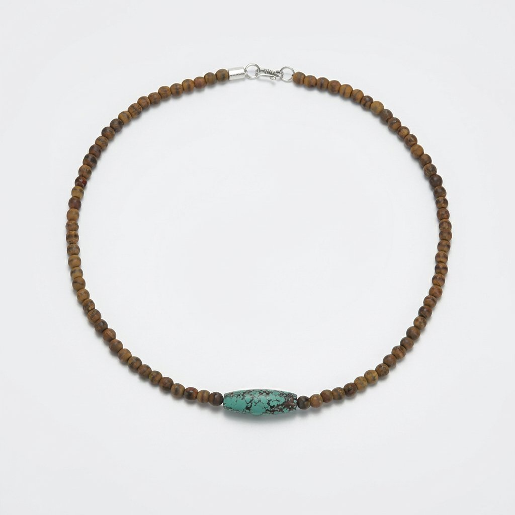 Earthly Wisdom: Natural Wood & Turquoise Barrel Bead Healing Necklace