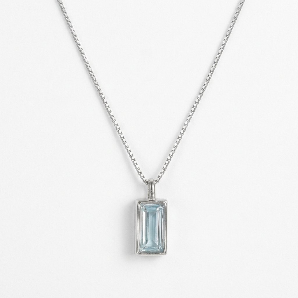 Clarity & Calm: Natural Blue Topaz & S925 Sterling Silver Geometric Pendant Necklace